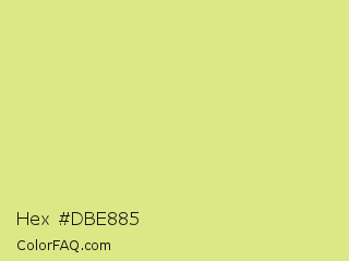 Hex #dbe885 Color is a light yellow color and the nearest color is Key Lime #e8f48c. Hex code #dbe885 and RGB value is rgb(219,232,133). In RGB color space, this color is composed of 86% red, 91% green, 52% blue, In CMYK color space, this color is composed of 6% cyan, 0% magenta, 43% yellow , 9% black , In HSL color space, this color has a hue angle of 68° , 68% saturation and 72% lightness.