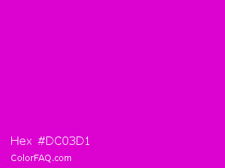 Hex #dc03d1 Color is a normal magenta color and the nearest color is Deep Magenta #cc00cc. Hex code #dc03d1 and RGB value is rgb(220,3,209). In RGB color space, this color is composed of 86% red, 1% green, 82% blue, In CMYK color space, this color is composed of 0% cyan, 99% magenta, 5% yellow , 14% black , In HSL color space, this color has a hue angle of 303° , 97% saturation and 44% lightness.