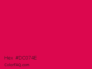 Hex #dc074e Color is a normal rose color and the nearest color is Debian Red #d70a53. Hex code #dc074e and RGB value is rgb(220,7,78). In RGB color space, this color is composed of 86% red, 3% green, 31% blue, In CMYK color space, this color is composed of 0% cyan, 97% magenta, 65% yellow , 14% black , In HSL color space, this color has a hue angle of 340° , 94% saturation and 45% lightness.