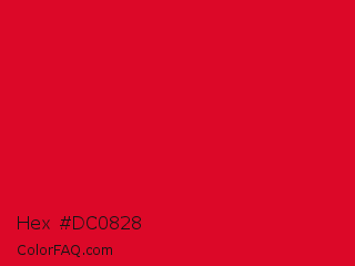 Hex #dc0828 Color is a normal red color and the nearest color is Medium Candy Apple Red #e2062c. Hex code #dc0828 and RGB value is rgb(220,8,40). In RGB color space, this color is composed of 86% red, 3% green, 16% blue, In CMYK color space, this color is composed of 0% cyan, 96% magenta, 82% yellow , 14% black , In HSL color space, this color has a hue angle of 351° , 93% saturation and 45% lightness.