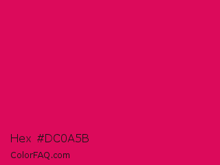 Hex #dc0a5b Color is a normal rose color and the nearest color is Razzmatazz Crayola #e30b5c. Hex code #dc0a5b and RGB value is rgb(220,10,91). In RGB color space, this color is composed of 86% red, 4% green, 36% blue, In CMYK color space, this color is composed of 0% cyan, 95% magenta, 59% yellow , 14% black , In HSL color space, this color has a hue angle of 337° , 91% saturation and 45% lightness.