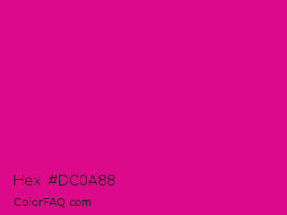Hex #dc0a88 Color is a normal magenta color and the nearest color is Mexican Pink #e4007c. Hex code #dc0a88 and RGB value is rgb(220,10,136). In RGB color space, this color is composed of 86% red, 4% green, 53% blue, In CMYK color space, this color is composed of 0% cyan, 95% magenta, 38% yellow , 14% black , In HSL color space, this color has a hue angle of 324° , 91% saturation and 45% lightness.