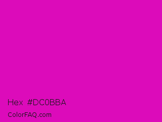 Hex #dc0bba Color is a normal magenta color and the nearest color is Deep Magenta #cc00cc. Hex code #dc0bba and RGB value is rgb(220,11,186). In RGB color space, this color is composed of 86% red, 4% green, 73% blue, In CMYK color space, this color is composed of 0% cyan, 95% magenta, 15% yellow , 14% black , In HSL color space, this color has a hue angle of 310° , 90% saturation and 45% lightness.