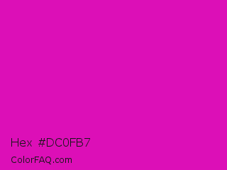 Hex #dc0fb7 Color is a normal magenta color and the nearest color is Deep Magenta #cc00cc. Hex code #dc0fb7 and RGB value is rgb(220,15,183). In RGB color space, this color is composed of 86% red, 6% green, 72% blue, In CMYK color space, this color is composed of 0% cyan, 93% magenta, 17% yellow , 14% black , In HSL color space, this color has a hue angle of 311° , 87% saturation and 46% lightness.