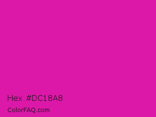 Hex #dc18a8 Color is a normal magenta color and the nearest color is Barbie Pink #e0218a. Hex code #dc18a8 and RGB value is rgb(220,24,168). In RGB color space, this color is composed of 86% red, 9% green, 66% blue, In CMYK color space, this color is composed of 0% cyan, 89% magenta, 24% yellow , 14% black , In HSL color space, this color has a hue angle of 316° , 80% saturation and 48% lightness.