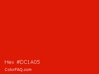 Hex #dc1a05 Color is a normal red color and the nearest color is Rosso Corsa #d40000. Hex code #dc1a05 and RGB value is rgb(220,26,5). In RGB color space, this color is composed of 86% red, 10% green, 2% blue, In CMYK color space, this color is composed of 0% cyan, 88% magenta, 98% yellow , 14% black , In HSL color space, this color has a hue angle of 6° , 96% saturation and 44% lightness.