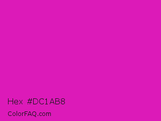 Hex #dc1ab8 Color is a normal magenta color and the nearest color is Shocking Pink #fc0fc0. Hex code #dc1ab8 and RGB value is rgb(220,26,184). In RGB color space, this color is composed of 86% red, 10% green, 72% blue, In CMYK color space, this color is composed of 0% cyan, 88% magenta, 16% yellow , 14% black , In HSL color space, this color has a hue angle of 311° , 79% saturation and 48% lightness.