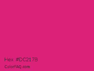 Hex #dc217b Color is a normal rose color and the nearest color is Vivid Cerise #da1d81. Hex code #dc217b and RGB value is rgb(220,33,123). In RGB color space, this color is composed of 86% red, 13% green, 48% blue, In CMYK color space, this color is composed of 0% cyan, 85% magenta, 44% yellow , 14% black , In HSL color space, this color has a hue angle of 331° , 74% saturation and 50% lightness.