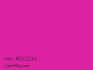 Hex #dc22a1 Color is a normal magenta color and the nearest color is Barbie Pink #e0218a. Hex code #dc22a1 and RGB value is rgb(220,34,161). In RGB color space, this color is composed of 86% red, 13% green, 63% blue, In CMYK color space, this color is composed of 0% cyan, 85% magenta, 27% yellow , 14% black , In HSL color space, this color has a hue angle of 319° , 73% saturation and 50% lightness.