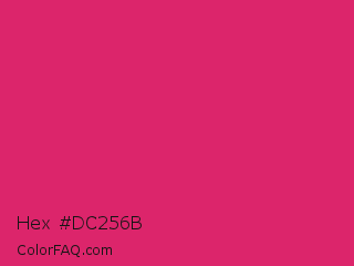 Hex #dc256b Color is a normal rose color and the nearest color is Razzmatazz #e3256b. Hex code #dc256b and RGB value is rgb(220,37,107). In RGB color space, this color is composed of 86% red, 15% green, 42% blue, In CMYK color space, this color is composed of 0% cyan, 83% magenta, 51% yellow , 14% black , In HSL color space, this color has a hue angle of 337° , 72% saturation and 50% lightness.