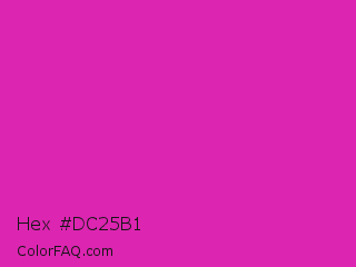Hex #dc25b1 Color is a normal magenta color and the nearest color is Frostbite #e936a7. Hex code #dc25b1 and RGB value is rgb(220,37,177). In RGB color space, this color is composed of 86% red, 15% green, 69% blue, In CMYK color space, this color is composed of 0% cyan, 83% magenta, 20% yellow , 14% black , In HSL color space, this color has a hue angle of 314° , 72% saturation and 50% lightness.