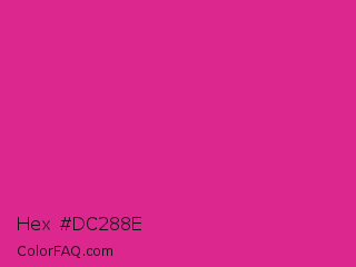 Hex #dc288e Color is a normal magenta color and the nearest color is Barbie Pink #e0218a. Hex code #dc288e and RGB value is rgb(220,40,142). In RGB color space, this color is composed of 86% red, 16% green, 56% blue, In CMYK color space, this color is composed of 0% cyan, 82% magenta, 35% yellow , 14% black , In HSL color space, this color has a hue angle of 326° , 72% saturation and 51% lightness.