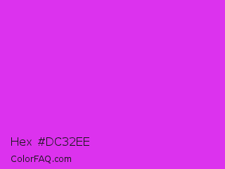 Hex #dc32ee Color is a normal magenta color and the nearest color is Steel Pink #cc33cc. Hex code #dc32ee and RGB value is rgb(220,50,238). In RGB color space, this color is composed of 86% red, 20% green, 93% blue, In CMYK color space, this color is composed of 8% cyan, 79% magenta, 0% yellow , 7% black , In HSL color space, this color has a hue angle of 294° , 85% saturation and 56% lightness.