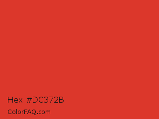 Hex #dc372b Color is a normal red color and the nearest color is CG Red #e03c31. Hex code #dc372b and RGB value is rgb(220,55,43). In RGB color space, this color is composed of 86% red, 22% green, 17% blue, In CMYK color space, this color is composed of 0% cyan, 75% magenta, 80% yellow , 14% black , In HSL color space, this color has a hue angle of 4° , 72% saturation and 52% lightness.