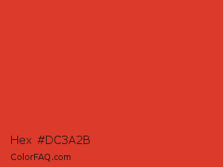 Hex #dc3a2b Color is a normal red color and the nearest color is CG Red #e03c31. Hex code #dc3a2b and RGB value is rgb(220,58,43). In RGB color space, this color is composed of 86% red, 23% green, 17% blue, In CMYK color space, this color is composed of 0% cyan, 74% magenta, 80% yellow , 14% black , In HSL color space, this color has a hue angle of 5° , 72% saturation and 52% lightness.