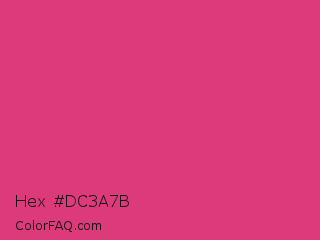 Hex #dc3a7b Color is a normal rose color and the nearest color is Magenta Pantone #d0417e. Hex code #dc3a7b and RGB value is rgb(220,58,123). In RGB color space, this color is composed of 86% red, 23% green, 48% blue, In CMYK color space, this color is composed of 0% cyan, 74% magenta, 44% yellow , 14% black , In HSL color space, this color has a hue angle of 336° , 70% saturation and 55% lightness.