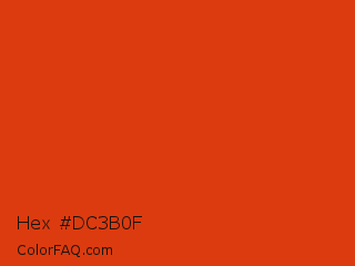Hex #dc3b0f Color is a normal red color and the nearest color is Vermilion #d9381e. Hex code #dc3b0f and RGB value is rgb(220,59,15). In RGB color space, this color is composed of 86% red, 23% green, 6% blue, In CMYK color space, this color is composed of 0% cyan, 73% magenta, 93% yellow , 14% black , In HSL color space, this color has a hue angle of 13° , 87% saturation and 46% lightness.