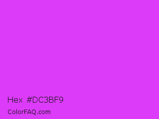 Hex #dc3bf9 Color is a normal purple color and the nearest color is Steel Pink #cc33cc. Hex code #dc3bf9 and RGB value is rgb(220,59,249). In RGB color space, this color is composed of 86% red, 23% green, 98% blue, In CMYK color space, this color is composed of 12% cyan, 76% magenta, 0% yellow , 2% black , In HSL color space, this color has a hue angle of 291° , 94% saturation and 60% lightness.