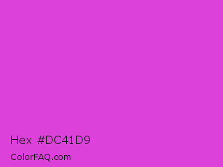 Hex #dc41d9 Color is a normal magenta color and the nearest color is Steel Pink #cc33cc. Hex code #dc41d9 and RGB value is rgb(220,65,217). In RGB color space, this color is composed of 86% red, 25% green, 85% blue, In CMYK color space, this color is composed of 0% cyan, 70% magenta, 1% yellow , 14% black , In HSL color space, this color has a hue angle of 301° , 69% saturation and 56% lightness.
