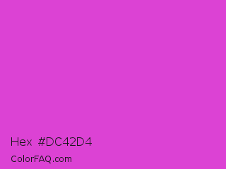 Hex #dc42d4 Color is a normal magenta color and the nearest color is Steel Pink #cc33cc. Hex code #dc42d4 and RGB value is rgb(220,66,212). In RGB color space, this color is composed of 86% red, 26% green, 83% blue, In CMYK color space, this color is composed of 0% cyan, 70% magenta, 4% yellow , 14% black , In HSL color space, this color has a hue angle of 303° , 69% saturation and 56% lightness.