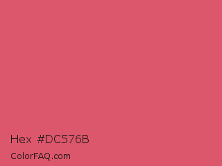 Hex #dc576b Color is a normal red color and the nearest color is Mandy #e25465. Hex code #dc576b and RGB value is rgb(220,87,107). In RGB color space, this color is composed of 86% red, 34% green, 42% blue, In CMYK color space, this color is composed of 0% cyan, 60% magenta, 51% yellow , 14% black , In HSL color space, this color has a hue angle of 351° , 66% saturation and 60% lightness.