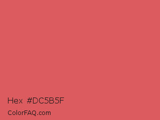 Hex #dc5b5f Color is a light red color and the nearest color is Roman #de6360. Hex code #dc5b5f and RGB value is rgb(220,91,95). In RGB color space, this color is composed of 86% red, 36% green, 37% blue, In CMYK color space, this color is composed of 0% cyan, 59% magenta, 57% yellow , 14% black , In HSL color space, this color has a hue angle of 358° , 65% saturation and 61% lightness.