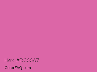 Hex #dc66a7 Color is a light magenta color and the nearest color is Thulian Pink #de6fa1. Hex code #dc66a7 and RGB value is rgb(220,102,167). In RGB color space, this color is composed of 86% red, 40% green, 65% blue, In CMYK color space, this color is composed of 0% cyan, 54% magenta, 24% yellow , 14% black , In HSL color space, this color has a hue angle of 327° , 63% saturation and 63% lightness.