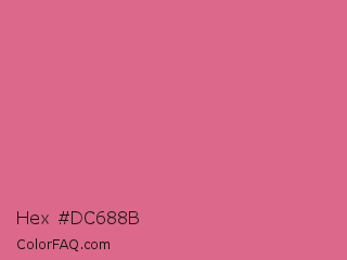 Hex #dc688b Color is a light rose color and the nearest color is Pale Red Violet #db7093. Hex code #dc688b and RGB value is rgb(220,104,139). In RGB color space, this color is composed of 86% red, 41% green, 55% blue, In CMYK color space, this color is composed of 0% cyan, 53% magenta, 37% yellow , 14% black , In HSL color space, this color has a hue angle of 342° , 62% saturation and 64% lightness.