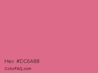 Hex #dc6a88 Color is a light rose color and the nearest color is Pale Red Violet #db7093. Hex code #dc6a88 and RGB value is rgb(220,106,136). In RGB color space, this color is composed of 86% red, 42% green, 53% blue, In CMYK color space, this color is composed of 0% cyan, 52% magenta, 38% yellow , 14% black , In HSL color space, this color has a hue angle of 344° , 62% saturation and 64% lightness.