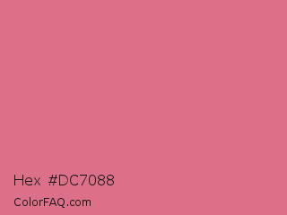 Hex #dc7088 Color is a light red color and the nearest color is Pale Red Violet #db7093. Hex code #dc7088 and RGB value is rgb(220,112,136). In RGB color space, this color is composed of 86% red, 44% green, 53% blue, In CMYK color space, this color is composed of 0% cyan, 49% magenta, 38% yellow , 14% black , In HSL color space, this color has a hue angle of 347° , 61% saturation and 65% lightness.
