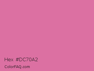 Hex #dc70a2 Color is a light rose color and the nearest color is Thulian Pink #de6fa1. Hex code #dc70a2 and RGB value is rgb(220,112,162). In RGB color space, this color is composed of 86% red, 44% green, 64% blue, In CMYK color space, this color is composed of 0% cyan, 49% magenta, 26% yellow , 14% black , In HSL color space, this color has a hue angle of 332° , 61% saturation and 65% lightness.