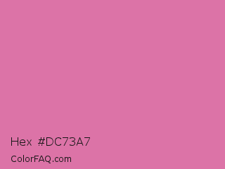 Hex #dc73a7 Color is a light rose color and the nearest color is Thulian Pink #de6fa1. Hex code #dc73a7 and RGB value is rgb(220,115,167). In RGB color space, this color is composed of 86% red, 45% green, 65% blue, In CMYK color space, this color is composed of 0% cyan, 48% magenta, 24% yellow , 14% black , In HSL color space, this color has a hue angle of 330° , 60% saturation and 66% lightness.