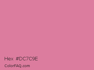 Hex #dc7c9e Color is a light rose color and the nearest color is Bright Blush #e47698. Hex code #dc7c9e and RGB value is rgb(220,124,158). In RGB color space, this color is composed of 86% red, 49% green, 62% blue, In CMYK color space, this color is composed of 0% cyan, 44% magenta, 28% yellow , 14% black , In HSL color space, this color has a hue angle of 339° , 58% saturation and 67% lightness.