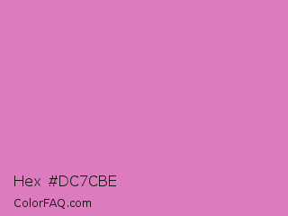Hex #dc7cbe Color is a light magenta color and the nearest color is Middle Purple #d982b5. Hex code #dc7cbe and RGB value is rgb(220,124,190). In RGB color space, this color is composed of 86% red, 49% green, 75% blue, In CMYK color space, this color is composed of 0% cyan, 44% magenta, 14% yellow , 14% black , In HSL color space, this color has a hue angle of 319° , 58% saturation and 67% lightness.