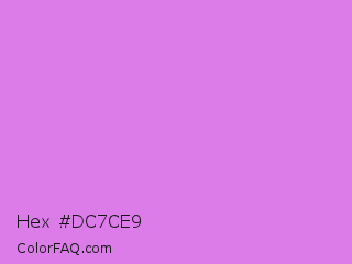Hex #dc7ce9 Color is a light magenta color and the nearest color is Lavender Magenta #ee82ee. Hex code #dc7ce9 and RGB value is rgb(220,124,233). In RGB color space, this color is composed of 86% red, 49% green, 91% blue, In CMYK color space, this color is composed of 6% cyan, 47% magenta, 0% yellow , 9% black , In HSL color space, this color has a hue angle of 293° , 71% saturation and 70% lightness.