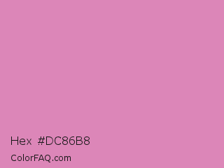 Hex #dc86b8 Color is a light magenta color and the nearest color is Middle Purple #d982b5. Hex code #dc86b8 and RGB value is rgb(220,134,184). In RGB color space, this color is composed of 86% red, 53% green, 72% blue, In CMYK color space, this color is composed of 0% cyan, 39% magenta, 16% yellow , 14% black , In HSL color space, this color has a hue angle of 325° , 55% saturation and 69% lightness.