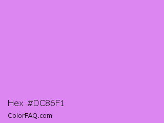 Hex #dc86f1 Color is a light purple color and the nearest color is Bright Lilac #d891ef. Hex code #dc86f1 and RGB value is rgb(220,134,241). In RGB color space, this color is composed of 86% red, 53% green, 95% blue, In CMYK color space, this color is composed of 9% cyan, 44% magenta, 0% yellow , 5% black , In HSL color space, this color has a hue angle of 288° , 79% saturation and 74% lightness.