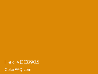 Hex #dc8905 Color is a normal orange color and the nearest color is Harvest Gold #da9100. Hex code #dc8905 and RGB value is rgb(220,137,5). In RGB color space, this color is composed of 86% red, 54% green, 2% blue, In CMYK color space, this color is composed of 0% cyan, 38% magenta, 98% yellow , 14% black , In HSL color space, this color has a hue angle of 37° , 96% saturation and 44% lightness.