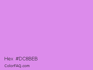 Hex #dc8beb Color is a light purple color and the nearest color is Bright Lilac #d891ef. Hex code #dc8beb and RGB value is rgb(220,139,235). In RGB color space, this color is composed of 86% red, 55% green, 92% blue, In CMYK color space, this color is composed of 6% cyan, 41% magenta, 0% yellow , 8% black , In HSL color space, this color has a hue angle of 291° , 71% saturation and 73% lightness.