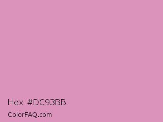 Hex #dc93bb Color is a light magenta color and the nearest color is Shocking #e292c0. Hex code #dc93bb and RGB value is rgb(220,147,187). In RGB color space, this color is composed of 86% red, 58% green, 73% blue, In CMYK color space, this color is composed of 0% cyan, 33% magenta, 15% yellow , 14% black , In HSL color space, this color has a hue angle of 327° , 51% saturation and 72% lightness.