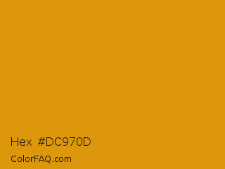 Hex #dc970d Color is a normal orange color and the nearest color is Gamboge #e49b0f. Hex code #dc970d and RGB value is rgb(220,151,13). In RGB color space, this color is composed of 86% red, 59% green, 5% blue, In CMYK color space, this color is composed of 0% cyan, 31% magenta, 94% yellow , 14% black , In HSL color space, this color has a hue angle of 40° , 89% saturation and 46% lightness.