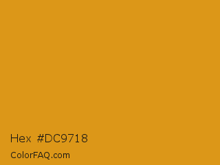 Hex #dc9718 Color is a normal orange color and the nearest color is Dixie #e29418. Hex code #dc9718 and RGB value is rgb(220,151,24). In RGB color space, this color is composed of 86% red, 59% green, 9% blue, In CMYK color space, this color is composed of 0% cyan, 31% magenta, 89% yellow , 14% black , In HSL color space, this color has a hue angle of 39° , 80% saturation and 48% lightness.