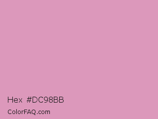 Hex #dc98bb Color is a light rose color and the nearest color is Shocking #e292c0. Hex code #dc98bb and RGB value is rgb(220,152,187). In RGB color space, this color is composed of 86% red, 60% green, 73% blue, In CMYK color space, this color is composed of 0% cyan, 31% magenta, 15% yellow , 14% black , In HSL color space, this color has a hue angle of 329° , 49% saturation and 73% lightness.