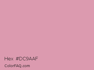 Hex #dc9aaf Color is a light rose color and the nearest color is Careys Pink #d29eaa. Hex code #dc9aaf and RGB value is rgb(220,154,175). In RGB color space, this color is composed of 86% red, 60% green, 69% blue, In CMYK color space, this color is composed of 0% cyan, 30% magenta, 20% yellow , 14% black , In HSL color space, this color has a hue angle of 341° , 49% saturation and 73% lightness.