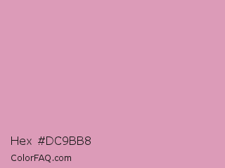 Hex #dc9bb8 Color is a light rose color and the nearest color is Shocking #e292c0. Hex code #dc9bb8 and RGB value is rgb(220,155,184). In RGB color space, this color is composed of 86% red, 61% green, 72% blue, In CMYK color space, this color is composed of 0% cyan, 30% magenta, 16% yellow , 14% black , In HSL color space, this color has a hue angle of 333° , 48% saturation and 74% lightness.