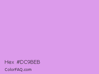 Hex #dc9beb Color is a light purple color and the nearest color is Bright Lilac #d891ef. Hex code #dc9beb and RGB value is rgb(220,155,235). In RGB color space, this color is composed of 86% red, 61% green, 92% blue, In CMYK color space, this color is composed of 6% cyan, 34% magenta, 0% yellow , 8% black , In HSL color space, this color has a hue angle of 289° , 67% saturation and 76% lightness.