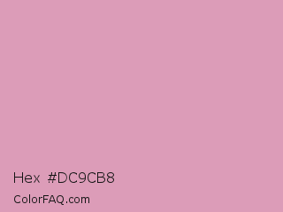 Hex #dc9cb8 Color is a light rose color and the nearest color is Shocking #e292c0. Hex code #dc9cb8 and RGB value is rgb(220,156,184). In RGB color space, this color is composed of 86% red, 61% green, 72% blue, In CMYK color space, this color is composed of 0% cyan, 29% magenta, 16% yellow , 14% black , In HSL color space, this color has a hue angle of 334° , 48% saturation and 74% lightness.