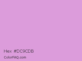 Hex #dc9cdb Color is a light magenta color and the nearest color is Medium Lavender Magenta #dda0dd. Hex code #dc9cdb and RGB value is rgb(220,156,219). In RGB color space, this color is composed of 86% red, 61% green, 86% blue, In CMYK color space, this color is composed of 0% cyan, 29% magenta, 0% yellow , 14% black , In HSL color space, this color has a hue angle of 301° , 48% saturation and 74% lightness.