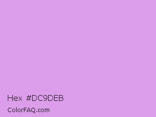 Hex #dc9deb Color is a light purple color and the nearest color is Bright Ube #d19fe8. Hex code #dc9deb and RGB value is rgb(220,157,235). In RGB color space, this color is composed of 86% red, 62% green, 92% blue, In CMYK color space, this color is composed of 6% cyan, 33% magenta, 0% yellow , 8% black , In HSL color space, this color has a hue angle of 288° , 66% saturation and 77% lightness.