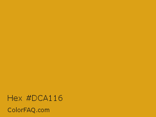 Hex #dca116 Color is a normal orange color and the nearest color is Golden Grass #daa520. Hex code #dca116 and RGB value is rgb(220,161,22). In RGB color space, this color is composed of 86% red, 63% green, 9% blue, In CMYK color space, this color is composed of 0% cyan, 27% magenta, 90% yellow , 14% black , In HSL color space, this color has a hue angle of 42° , 82% saturation and 47% lightness.